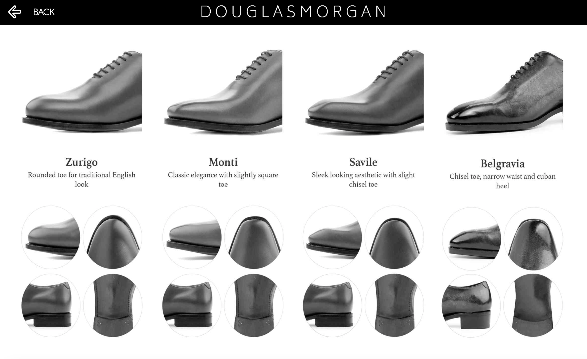 The types of leather below represent a full array of leather skins. They are all used in luxury shoe production and they differ from the "look" and "texture" point of view.