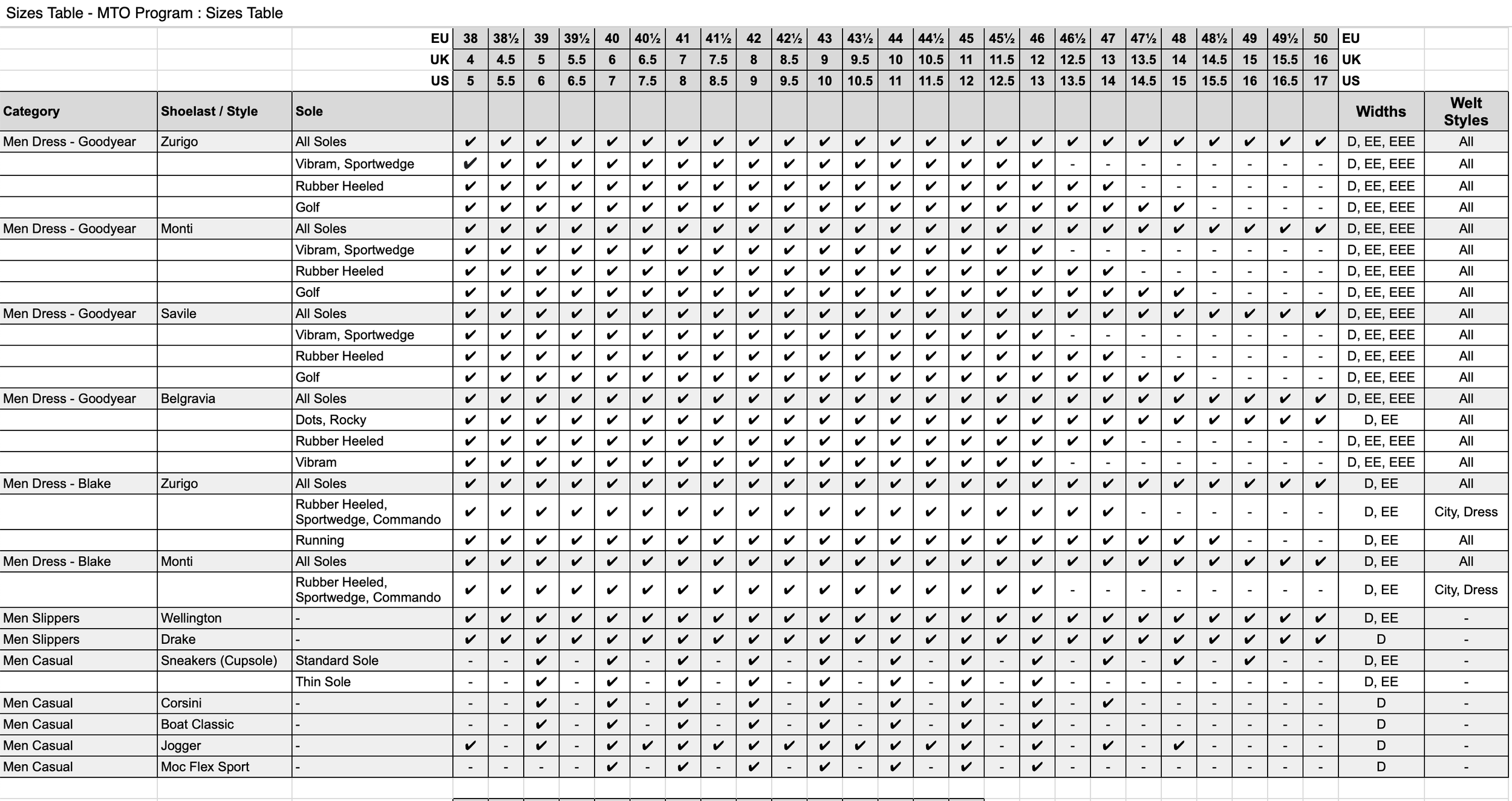 Take a look at our sizing options. See below.